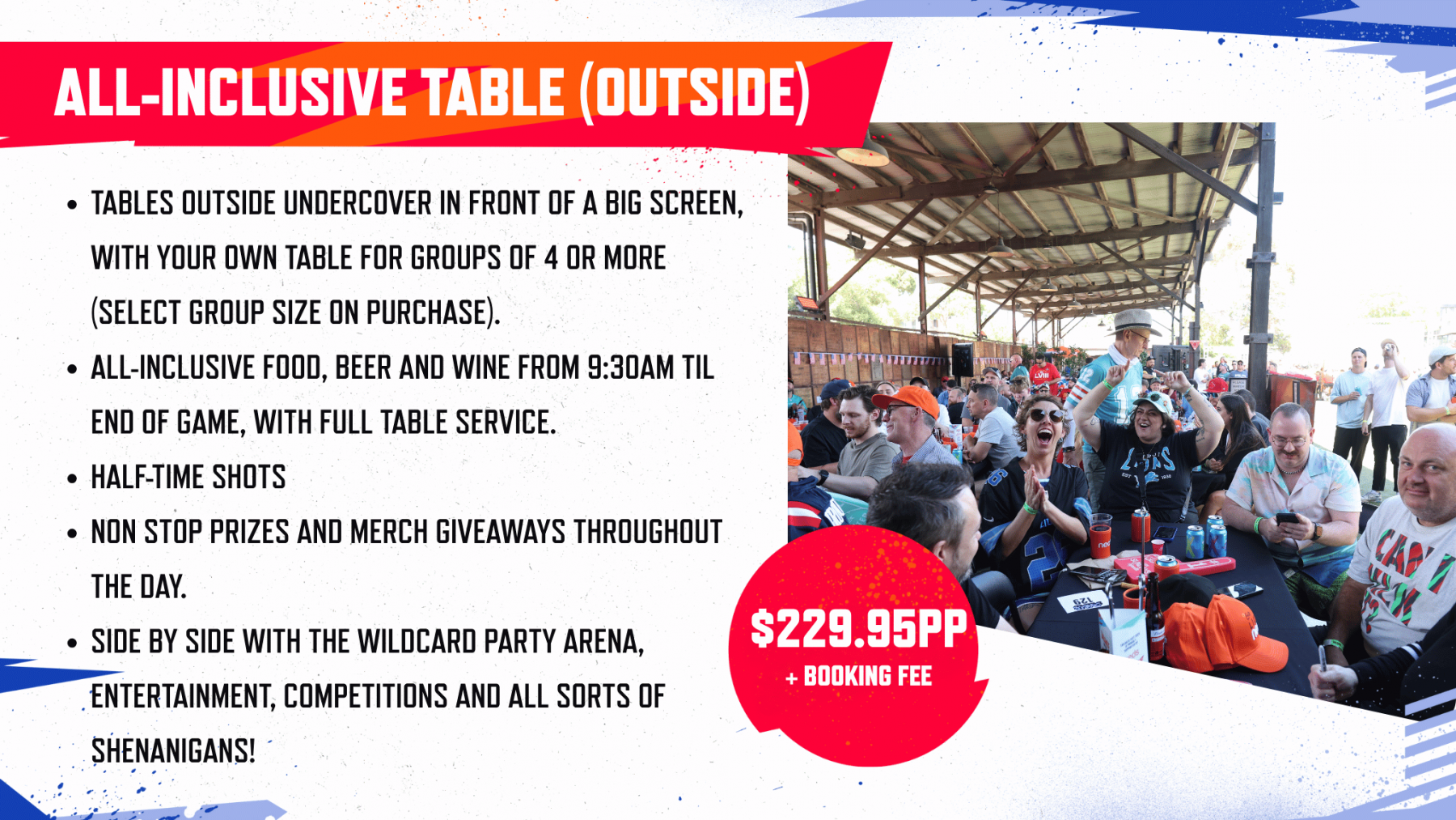 Bud Buckets, Carlton Dry stubbies, Hard Rated cans, spirits and cocktails. Drinks flow from kickoff to the final whistle.
